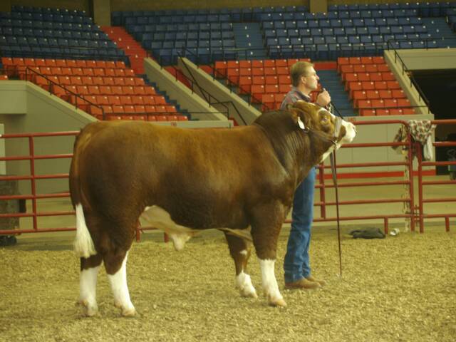 In November we brought 8 of our Full Fleckvieh to the 2009 North American International Livestock Exhibition. This was the first time that Full blood Simmental competed in their own classes. An impressive 52 head were exhibited by 16 breeders from as far away as Canada and Texas. It was a great opportunity to showcase our full bloods to the purebred breeders. I have posted a few pictues from the show